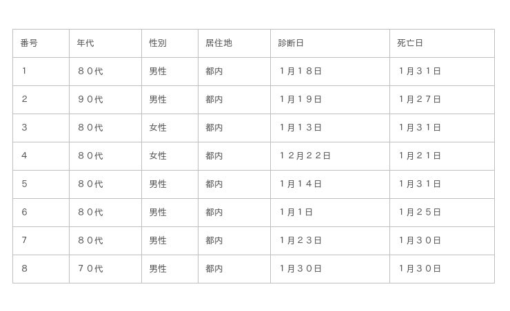 都内で新型コロナウイルスに感染した方が死亡されましたのでお知らせします。
