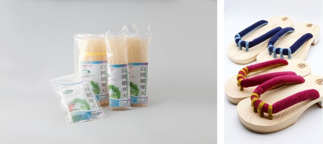 「食」は、岐阜県中津川市が発祥の地とされている和菓子・栗きんとんをはじめ、五平餅や蜂蜜などが揃います。寒天のほか、洗顔ブラシなど、「美容」に嬉しい商品も。「工芸」では、美濃焼の産地、岐阜県土岐市より、暮らしに溶け込む器をご紹介するほか、多治見市でつくられたタイルを使ったアクセサリーや、東濃ひのきを台座に使った5本指の下駄などをお手に取っていただけます。