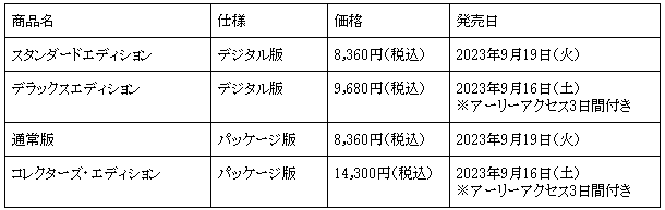 Steamをはじめ、PS4,PS5、Xbox series S/X、Xbox GamePassで2023年9月19日に販売を予定しております。