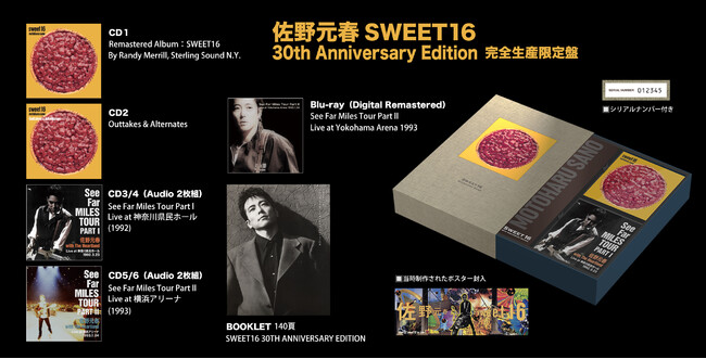 佐野元春90年代の傑作アルバム『SWEET16』のリリース30周年を記念して、6CD+BDというパッケージでリリースされた特別ボックスセット『SWEET16 30th Anniversary Edition』 。このボックスセットには、最新リマスタード盤やレア・ライブ音源、12インチ・クラブミックス、当時のコンサートを完全収録したライブ・アルバムなど、貴重なアーカイブが満載だ。