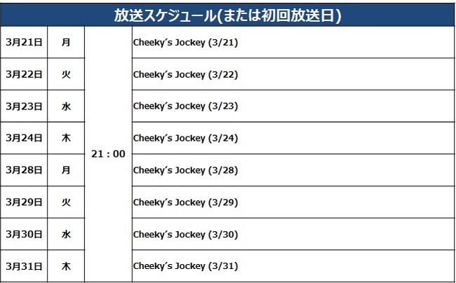 初回放送は、3月21日(月) 21時~22時までとなります。