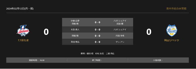 2024-02-12 一般社団法人Tリーグ ノジマTリーグ 2023-2024シーズン 公式戦 2月12日開催 T.T彩たま vs 岡山リベッツ 対戦オーダー発表 Tweet ノジマTリーグ 2023-2024シーズン 公式戦 2月12日奥州市総合体育館開催 T.T彩たま vs 岡山リベッツの対戦オーダーを発表します。 企業プレスリリース詳細へ PR TIMESトップへ 公式ツイッター Follow @Straightpress 最新情報をTwitterで受け取ろう! 公式フェイスブックページ 最新情報をFacebookで受け取ろう! 前の記事 一覧へ戻る 次の記事