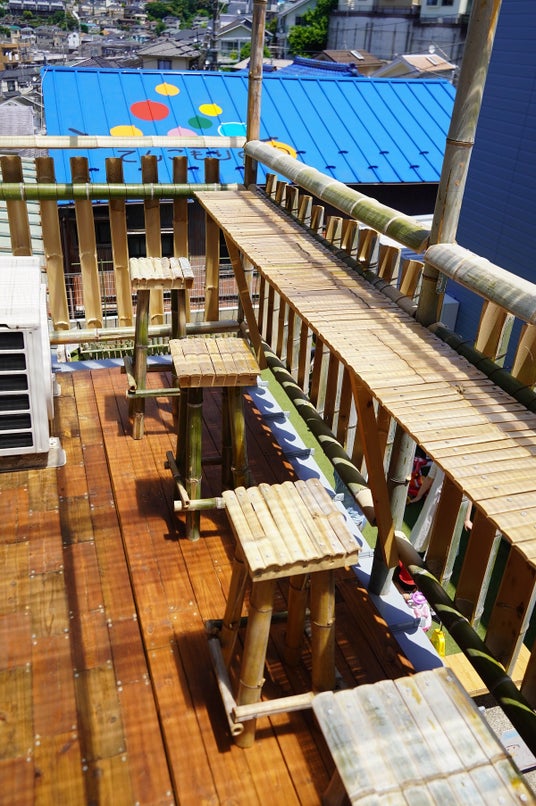 まち普請の整備助成金を活用した整備以外にも、2階の小部屋やバルコニー、庭の人工芝張りなどの整備を、地域の皆さんと協力しながら進めました。庭は、夏のプール遊びや野菜作りなど、自宅ではできないことを叶える場となっています。