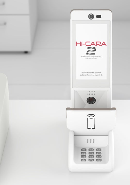 キヤノンマーケティングジャパン株式会社(代表取締役社長:足立正親、以下キヤノンMJ)は、オンライン資格確認向け次期顔認証付きカードリーダー「Hi-CARA2(ハイカラツー)」を社会保険診療報酬支払基金の認証を得て2026年4月下旬より販売予定です。マイナンバーカードによる本人確認に加え、スマートフォンのマイナ保険証の読み取り、暗証番号の入力も行える操作用テンキー、音声案内機能を一台に搭載し、厚生労働省より求められる新要件に対応しています。従来から医療現場で評価されている省スペース性を維持しながら、ユニバーサルデザインを追求しました。