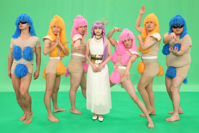 第2弾でも、シンプルな背景と最小限の小道具の中、芸人同士が互いに無茶なリクエストをしたことで、新たなキャラクターが多数誕生しました。そして今回、メンバーが自らキャラクターを考える「オールアウト」コーナーのゲストにガチャピンが登場。ガチャピンが現在レギュラー出演中の『Live Newsイット!』のお天気中継のシチュエーションで、ガチャピンとお天気キャスター役の田崎さくらを相手に、キャラクターメンバーがそれぞれ自ら考えた“変な”を実演しました。事前打ち合わせなしのコント収録では自由な芸人の動きにガチャピンが困惑する場面も。