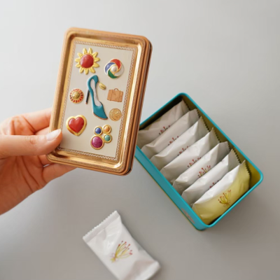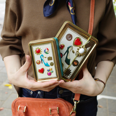 お菓子を食べた後はお菓子の【缶】をアクセサリーケースや小物入れなど、様々なアフターユースを楽しめます。重ねて使うと、缶の側面も可愛いです。