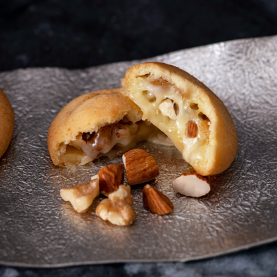 濃厚なチーズクリームとアーモンド・カシューナッツ・くるみの素敵な香りと食感が楽しめる、しっとりとした米粉のチーズクッキー「木の実ボール」が入っています。