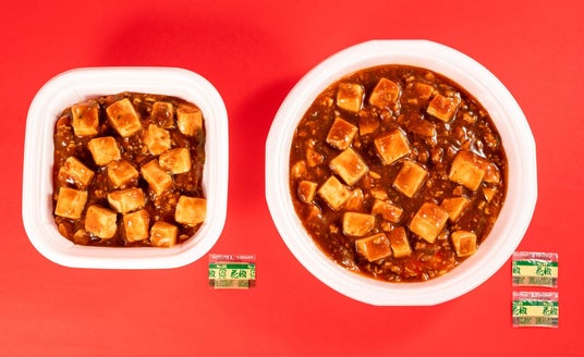 【内容】豆板醤、香辣醤など醤の旨みがあり、辛みの中にも旨みが感じられる本格的な麻婆豆腐丼を「たぶん40%増量」しています。別添の花椒も2個に増量。