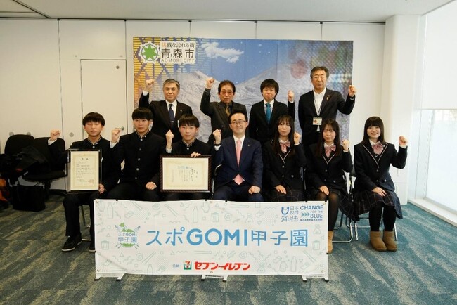2022年9月10日に行われた『スポGOMI甲子園2022・青森県大会』で優勝した青森山田高等学校(青森県青森市、校長:花田惇)在校生3人組の「青森山田ゲートボール部A」が、大会での成果を報告するため青森市の小野寺晃彦市長を表敬訪問しました。優勝したAチームは3年生で入試により大会に出場できないため、代理で2年生女子のチームが出場する事になり、計6人が訪れました。