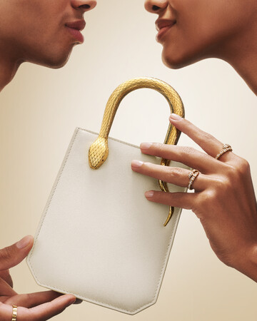 コンテンポラリーなデザインとアイコニックなディテールがユニークに融合した「セルペンティ」のバッグは、ヴァレンタインデーのギフトに最適です。アイボリーオパールカラーのソフトで丈夫なカーフレザーを使用し、構築的なボディの上には、ブルガリの60年代のジュエリーからインスパイアされたメタリックなスネークボディのハンドルが美しくあしらわれています。