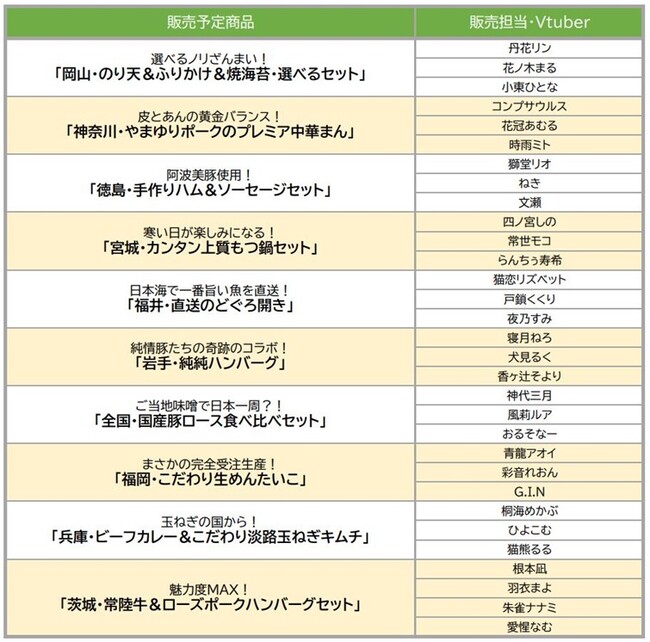 人気Vtuber31人が地元の選りすぐりの特産品をオンラインで即売