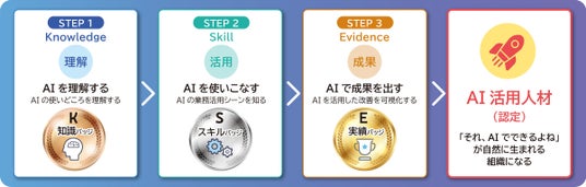 こうした課題に対し、株式会社デジタル・ナレッジは、デジタルバッジによるスキル管理サービス「KnowledgeDeliverSkill+」を大幅刷新。従来のスキル管理の枠を超え、AI活用を組織内に定着させるために、何をもってAI活用人材とするのかを明確にし、その育成と認定を支援します。