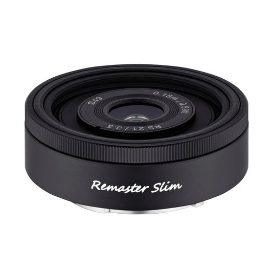 「Remaster Slim」は従来のレンズよりも小型で軽量でありながら、多くの機能を追加し、さらに強力になりました。このモデルは、ユーザーが必要とする様々な撮影機能と優れた携帯性を提供し、どんな撮影環境でも卓越した性能を発揮します。全長2cm未満の小さなサイズと80g未満の重量にもかかわらず、カスタムAF/MFスイッチを搭載するなど、多用途に対応。さらに、MFモードでは、AF時よりも最短撮影距離が短縮され、被写体をよりダイナミックかつリアルに捉えることができます。