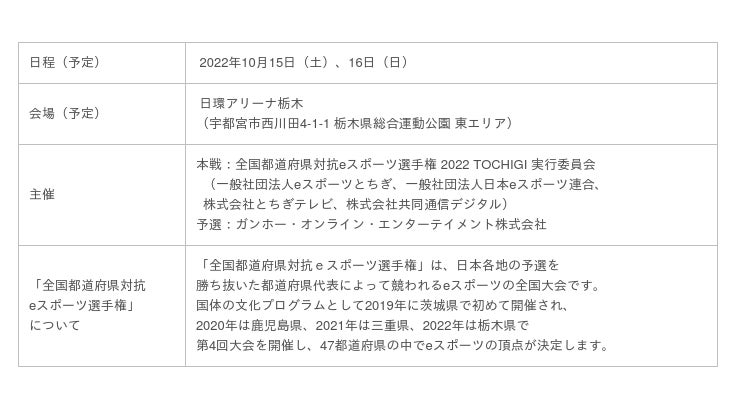 「全国都道府県対抗eスポーツ選手権 2022 TOCHIGI」概要