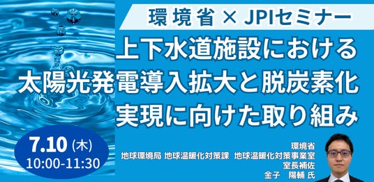 JPI(日本計画研究所)は、環境省 地球環境局 地球温暖化対策課 地球温暖化対策事業室 室長補佐 金子 陽輔 氏を招聘し、上下水道施設における太陽光発電導入拡大と脱炭素化実現に向けた取り組みについて詳説いただくセミナーを開催します。