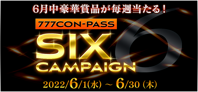 株式会社サミーネットワークスは、2022年6月1日(水)より、パチンコホールの朝の入場予約&抽選をアプリで実施できる「777CON-PASS(スリーセブンコンパス)」にて6つのキャンペーンで豪華景品が当たるSIXキャンペーンを開催いたします。