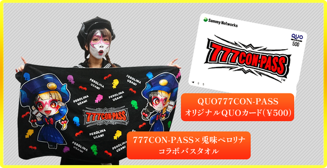 毎週6つのキャンペーンで『777CON-PASS×兎味ペロリナコラボバスタオル』、『777CON-PASSオリジナルQUOカード(¥500)』がそれぞれ複数名様に当たります。