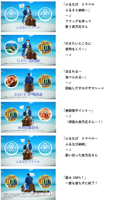 本作品では、貴乃花さんが、お馴染みの歌にのせて“ふるなびのお得なキャンペーン”や“ふるなびトラベル” “ふるなびカタログ”の魅力を紹介しています。