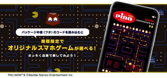 また、今回パッケージフタ中面のコードを読み込むと「ピノ」と『パックマン』がコラボしたオリジナルのスマホゲーム※2が期間限定で楽しめます。チョコアソートとシーズンアソートでそれぞれ異なるステージが遊べますので、是非どちらも楽しんでみてください。