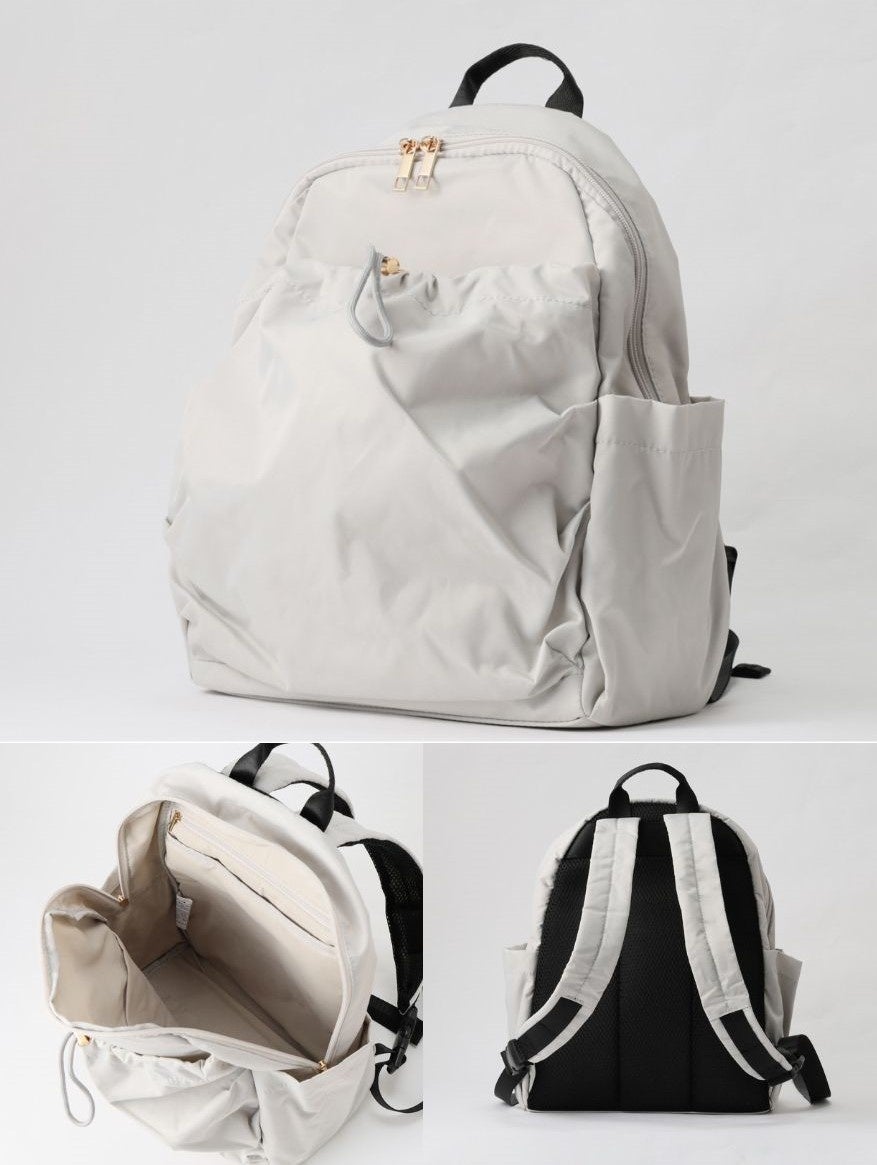 つや感のあるきれいめナイロン素材を使用した、大人女性に向けたリュックです。
