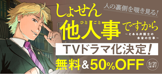 電子版コミックスでは「しょせん他人事ですから」TVドラマ化を記念しまして、1巻無料試し読み&1巻50%OFF(一部書店を除く)。