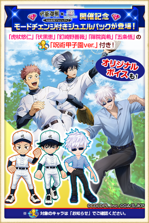 ガチャなどを引くために必要なジュエルを購入できる特別な「ジュエルパック」が発売中です。コラボを記念して、「呪術甲子園ver.」のモードチェンジが付いた特別なジュエルパックを販売しております。
