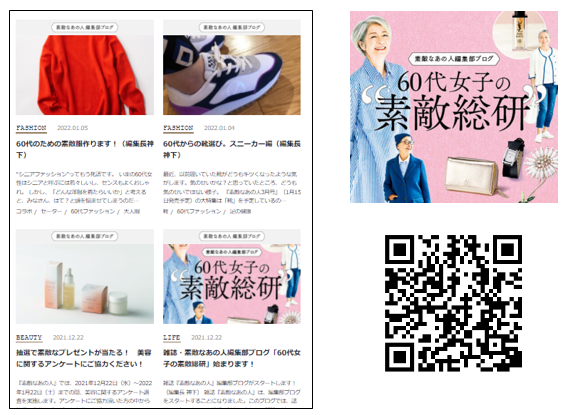 『素敵なあの人』は、60代の女性にとって最適なアイテムや本当に必要な情報を、わかりやすく丁寧に発信することでお悩みを解決し、新しい60代女性が生き生きと過ごせる社会に向けて、その一翼を担えるよう尽力してまいります。