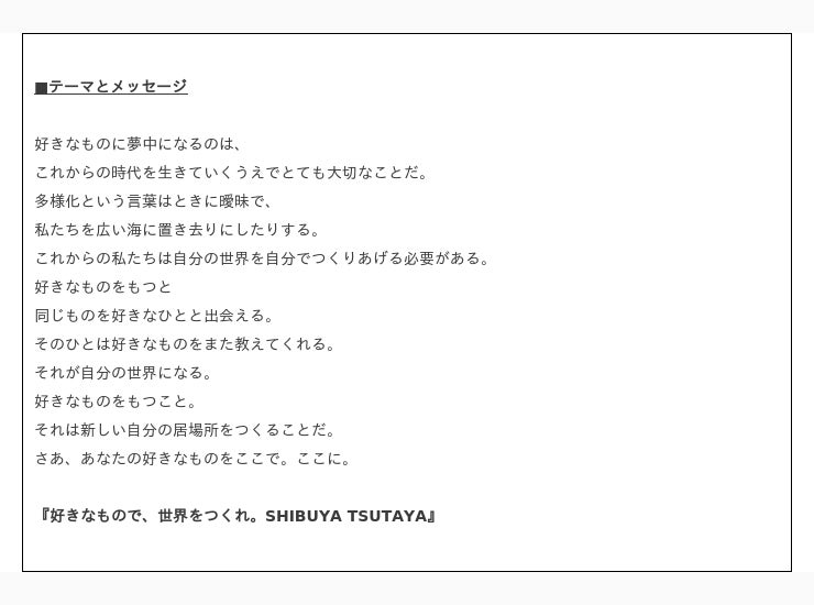 ここでしか出会えない体験を通して、これまでにない新しい「カルチュア・インフラ」として、2024年春に新しく生まれ変わる「SHIBUYA TSUTAYA」に、どうぞご期待ください。