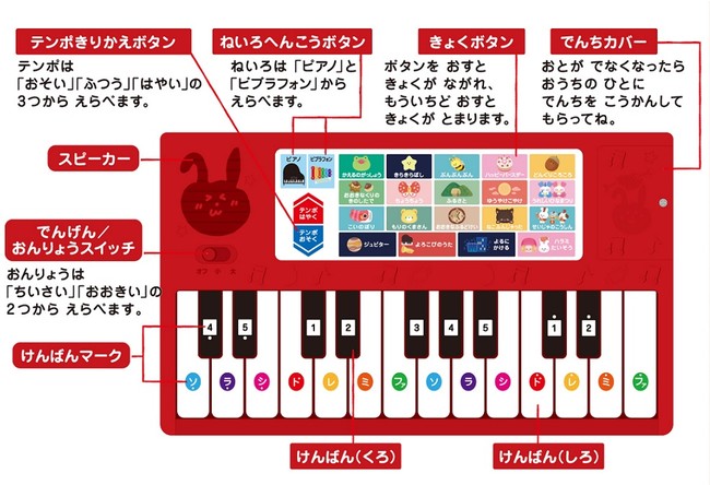 童謡からクラシックまで全19曲収録♪楽しく弾ける、14鍵盤のミニピアノ付き