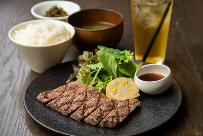 熊本・阿蘇の雄大な自然の中で育った希少な和牛“あか牛”のランチ限定スペシャル定食。(ドリンク/サラダ/ライス/味噌汁付き)