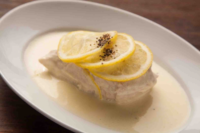 左から「三ケ日みかんモヒート」「アメリカンハイボール」「瀬戸内レモンサワー」「真鱈のフィッシュ&チップス」「大山鶏の瀬戸内レモンクリーム煮」「USリブアイロールステーキ」