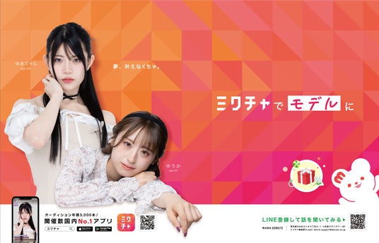 2024年7月23日に発売された『Ray』9月号の表3見開き広告に加え、関東を走るJR車両内の中吊り広告や都内を走行するアドトラックにて、2名の撮り下ろし広告ビジュアルが掲載されています。また、グランプリ受賞のゆあてゃん(BAD IVY)さんのビジュアルは「ミクチャ」アプリ内広告にも採用されるなど、2024年9月30日の任期満了までレギュラーモデルとして活動いただきます。