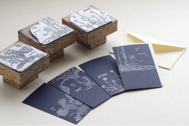 「PAPYRUS文具店」 八ヶ岳の麓で店を構える小さな文具店。作家であり代表を務める本山裕亮が手掛けるのは、手で彫った版を刷った紙ものの文具や、真鍮を削り出したペン軸など。彫った版の展示も。