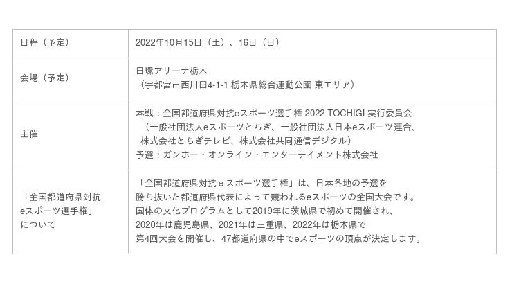 「全国都道府県対抗eスポーツ選手権 2022 TOCHIGI」概要