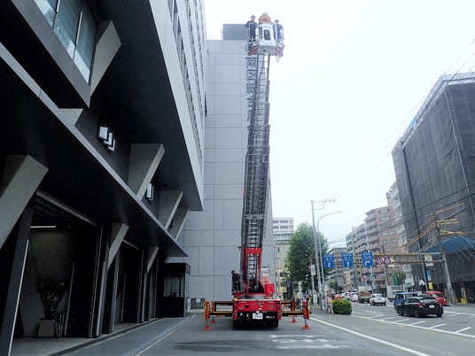 ミニカーにもなっている人気のはしご車の先端バスケット部分に乗って地上30メートルの高さから街を見てみませんか?