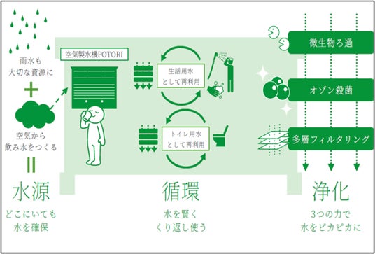 これにより、平時には公共施設や事業所などさまざまな施設で日常的に利用できるとともに、災害時の断水下でも水を自立的に確保できる仕組みを実現します。