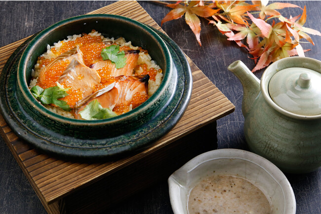 神戸三宮/磯上「黒十(コクトウ) 神戸本店」では、山の幸から秋の味覚の王様”松茸”を、海の幸からは”秋鮭、いくら”の釜飯をご用意。