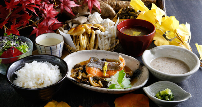 お昼の御膳にも秋のお味「富士山サーモンと木の子の自然薯むかごあんかけ」を。