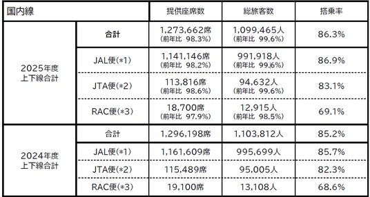 1.国内線 (JAL、J-AIR、JAC、HAC、JTA、RAC各社合計)
