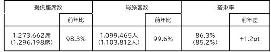 ※各数値は、JALグループ運航分のうち、他社による販売分を含めています。(他社運航便のうちコードシェアによる自社販売分」を除く。)