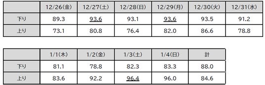● 総旅客数は前年並みとなりました。下りのピークは12月27、29日、上りのピークは1月3日でした。