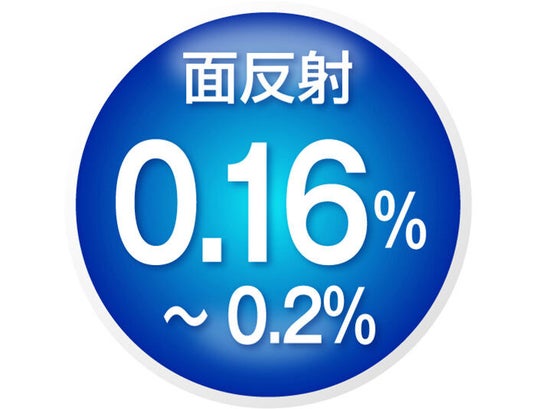面反射0.16~0.2%※を達成し、新たに静電気防止コートを採用。