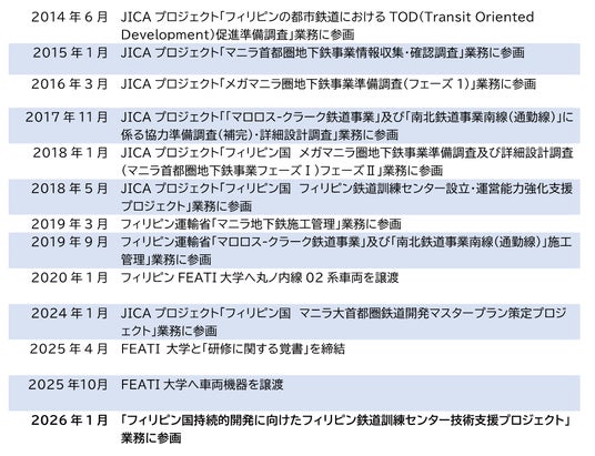 「フィリピン国持続的開発に向けたフィリピン鉄道訓練センター技術支援プロジェクト」受注概要