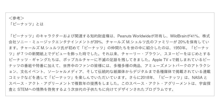 (C) 2022 Peanuts Worldwide LLC ( 短縮形 (C) 2022 Peanuts )