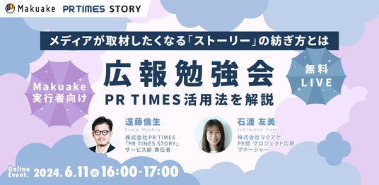 今回の取り組みにあわせて、実行者のためのPR勉強会「メディアが取材したくなる『ストーリー』の紡ぎ方とは Makuake実行者向け 広報勉強会-PR TIMES活用法を解説-」を2024年6月11日(火)に開催します。