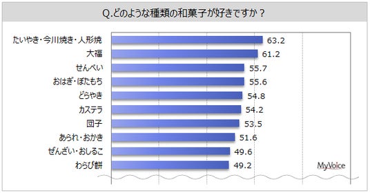 60・70代では「大福」、女性10・20代では「カステラ」が1位