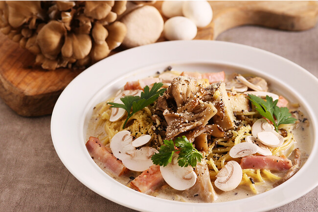 ■たっぷりきのことベーコンのクリームパスタ 1485円(税込)