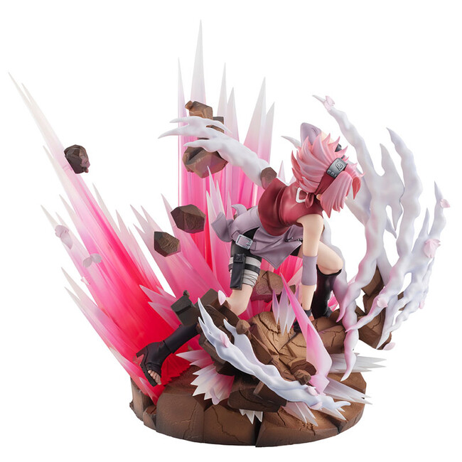 修業により身に着けたチャクラコントロールと怪力から放つ「桜花衝」をイメージし再現しました。渾身の一撃から繰り出される衝撃をダイナミックかつ繊細に造形。