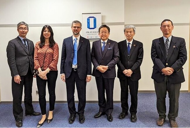 2023年4月24日、イタリア・ペルージャ外国人大学のバレリオ・デ・チェザリス学長らが岡山大学を訪れ、那須保友学長を表敬訪問しました。