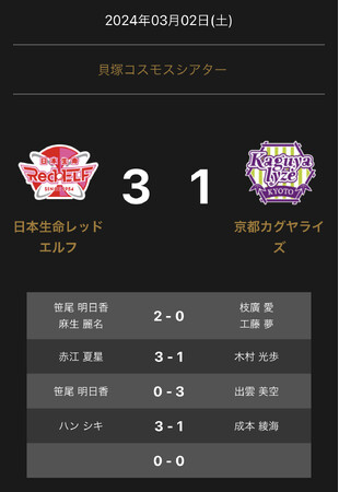 2024-03-03 一般社団法人Tリーグ ノジマTリーグ 2023-2024シーズン 公式戦 3月2日開催 日本生命レッドエルフ vs 京都カグヤライズ 試合結果 Tweet ノジマTリーグ 2023-2024シーズン 公式戦 3月2日開催 日本生命レッドエルフ vs 京都カグヤライズの試合は日本生命レッドエルフが3-1で勝利しました。 試合結果はこちらhttps://tleague.jp/schedule/detail.php?id=730 企業プレスリリース詳細へ PR TIMESトップへ 公式ツイッター Follow @Straightpress 最新情報をTwitterで受け取ろう! 公式フェイスブックページ 最新情報をFacebookで受け取ろう! 前の記事 一覧へ戻る 次の記事